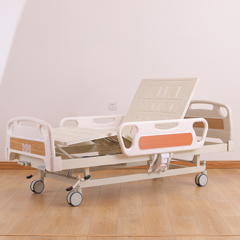 双功能双曲柄手动医院床的特点包括靠背、膝部支撑和曲柄,便于操作床和附近的其他电子设备。